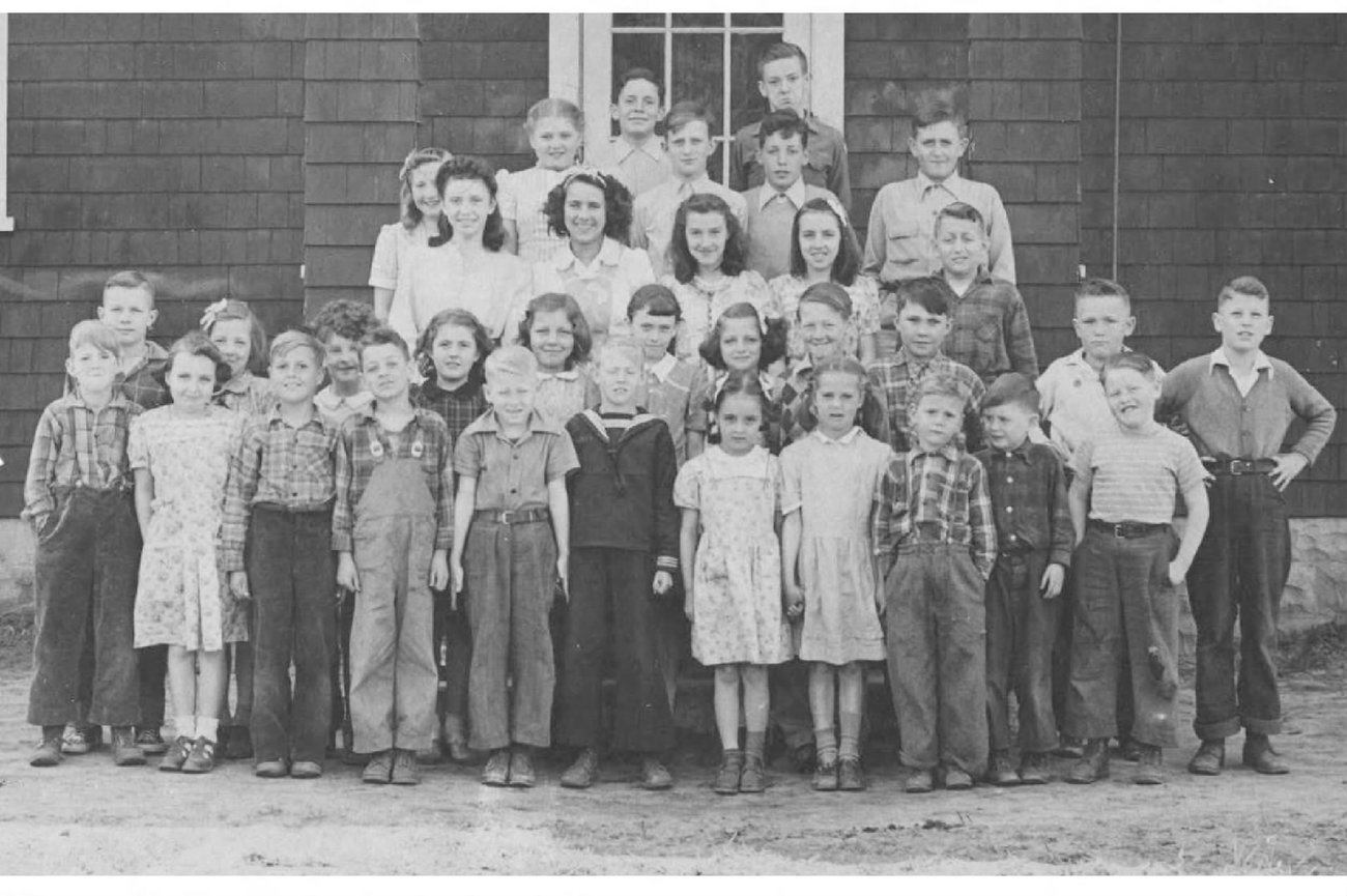 Aug. 1, 2012: This 1947 East Bethel School class photo was shared at a 2012 reunion. Food Pantry Director Dave Bean was honored with the Grange Community Service Award and Edna Bean York, 102, was recognized with an apple as one of the first to teach in the 1928 building.