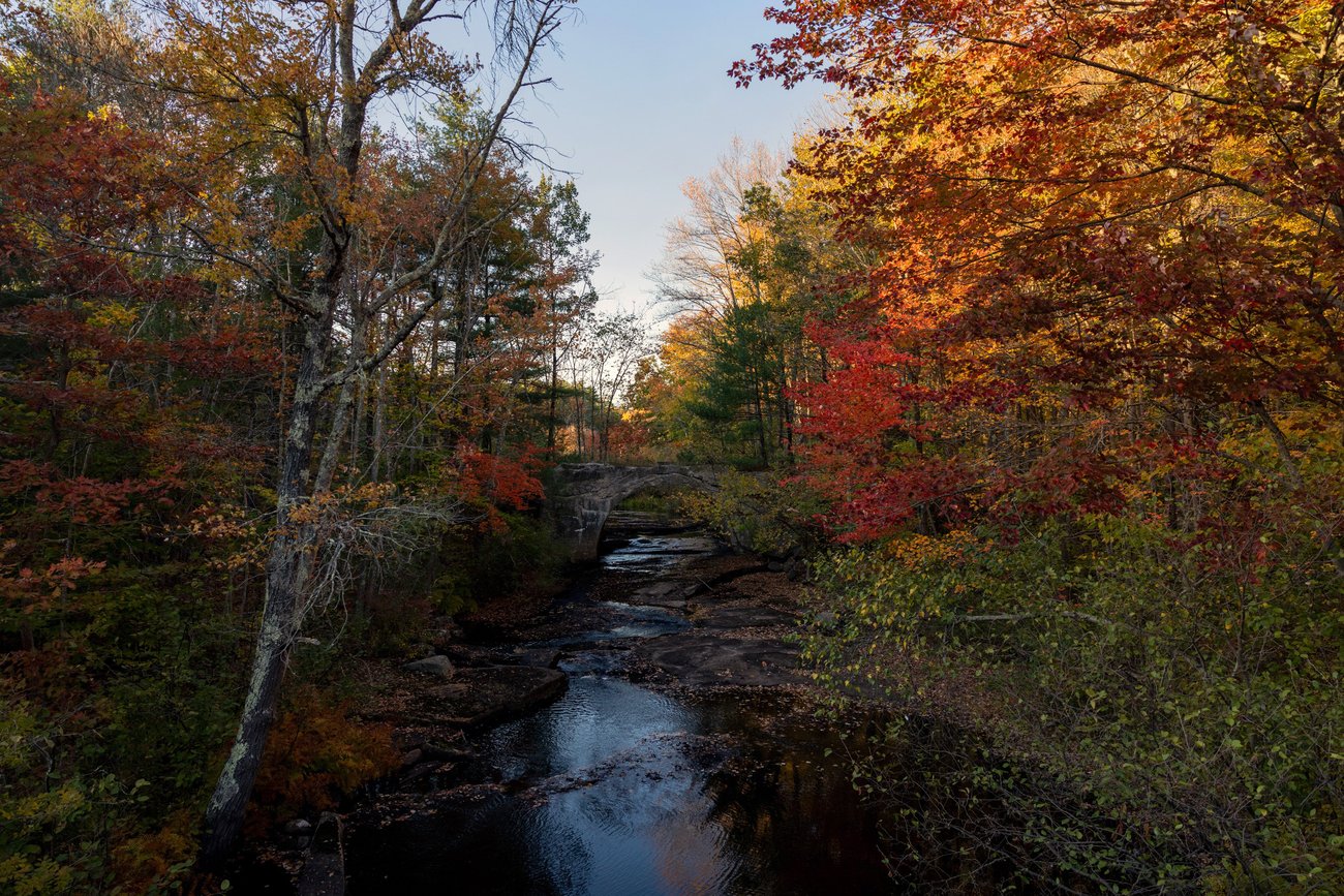 A stone bridge surrounded by fall foliage seen in Alfred on Oct. 10, 2024. |