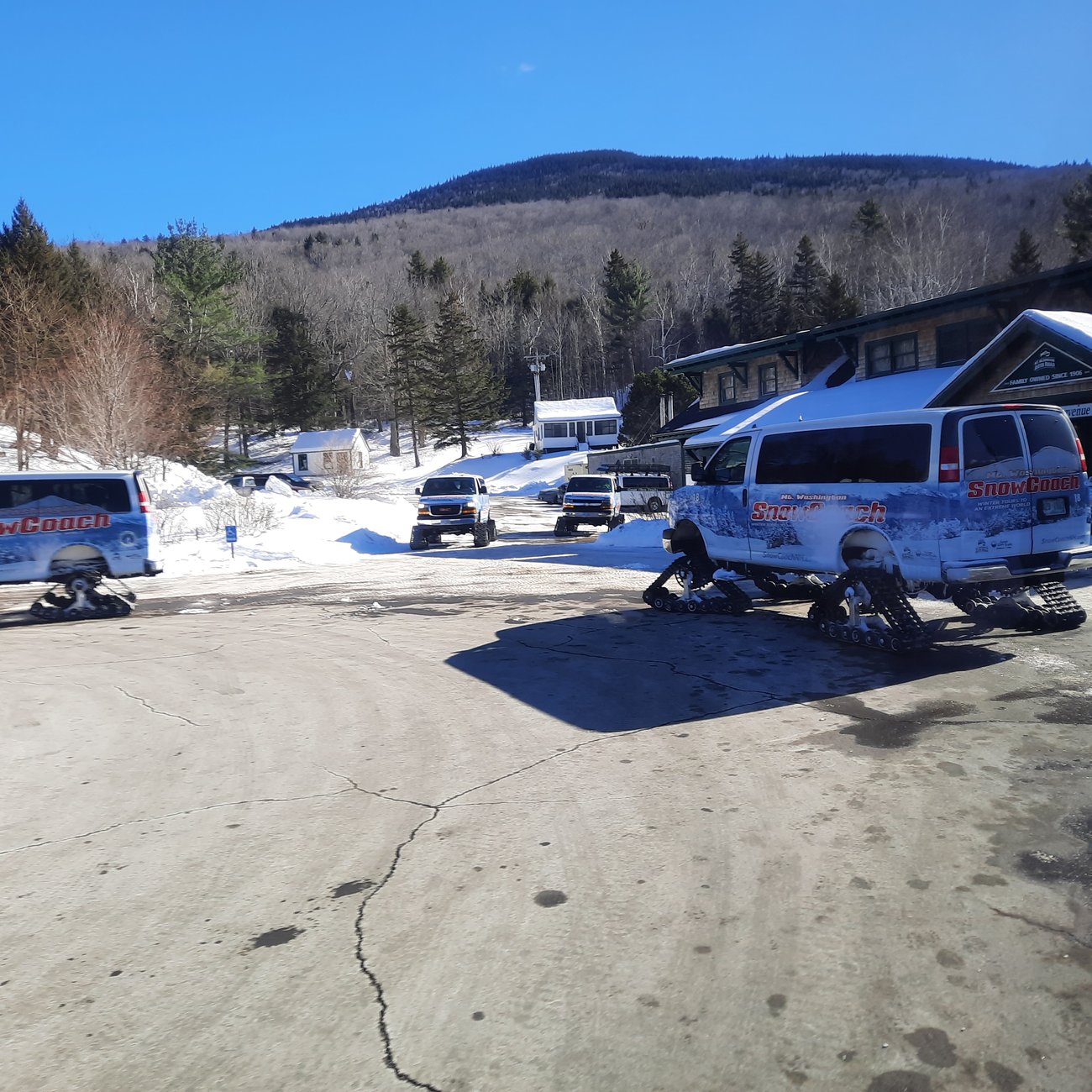 SnowCoaches are staged at the base of the Mount Washington Auto Road in Gorham, N.H., on Feb. 3 during a rare period of unusually calm winter weather that allowed summit trips to operate under favorable conditions. Clear skies and light winds marked an uncommon winter window for the mountain’s seasonal access program. People were line up with excitement for this opportunity. (Rebecca Richard/Staff writer) |