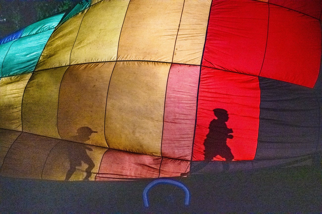 Children are silhouetted as they play in the walkthrough balloon Friday night at Simard-Payne Memorial Park in Lewiston during this year's festival. |