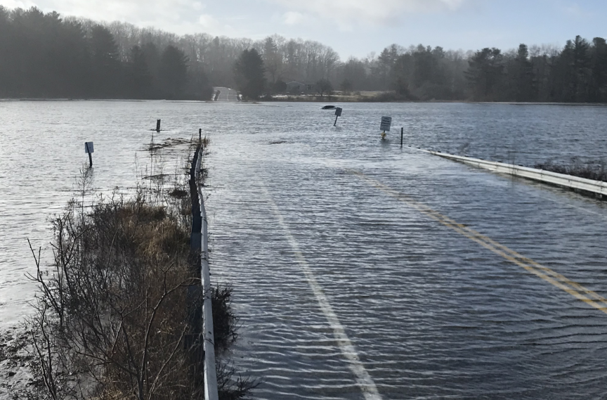 The Spurwink Marsh section of Sawyer Road/Street in Cape Elizabeth and Scarborough is pictured in the aftermath of a January 2024 storm. A car on the road was swept into the marsh during that storm. Courtesy of Matt Craig |