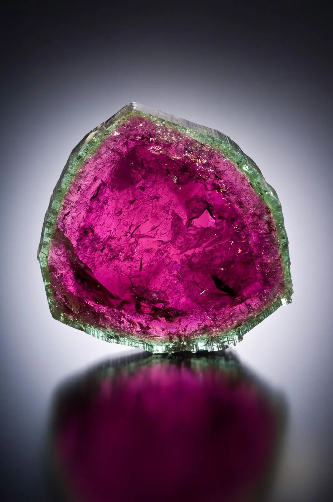 A vividly colored slice of Maine watermelon tourmaline at the Maine Mineral & Gem Museum in Bethel shows an intense magenta-to-raspberry core encircled by a translucent emerald-green rind, a striking natural color contrast that defines the state’s most iconic tourmaline. At the museum, the state’s geologic history comes to life through interactive exhibits, the nation’s largest collection of Maine gems and minerals, major meteorite holdings, and a tourmaline-centered narrative that connects historic mining with modern craftsmanship and design.(Courtesy of Maine Mineral & Gem Museum) |