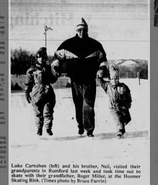 Jan. 3, 1996: Luke Carnahan (left) and his brother, Neil, visited their grandparents in Rumford and took time out to skate with their grandfather, Roger Miller at the Hosmer Skating Rink.