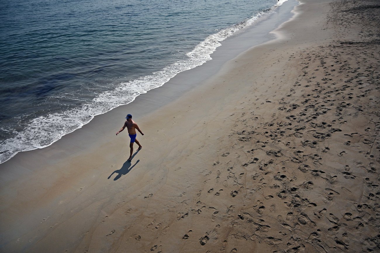 A beachgoer seems to have this stretch of Old Orchard Beach to himself as he walks near the water Sept. 17, 2024. |