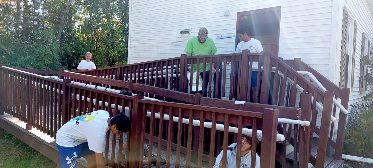 Members of Falmouth Scout Troop 93 paint the ramp at the Falmouth Historical Society Museum. (Courtesy of Troop 93)