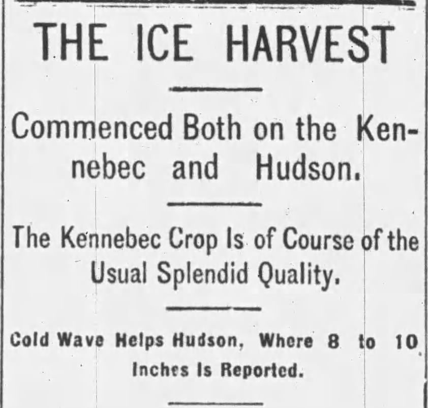 Feb. 2, 1900: Ice harvesting season begins on the Kennebec and Hudson rivers — and 'the Kennebec crop is of course of the usual splendid quality'